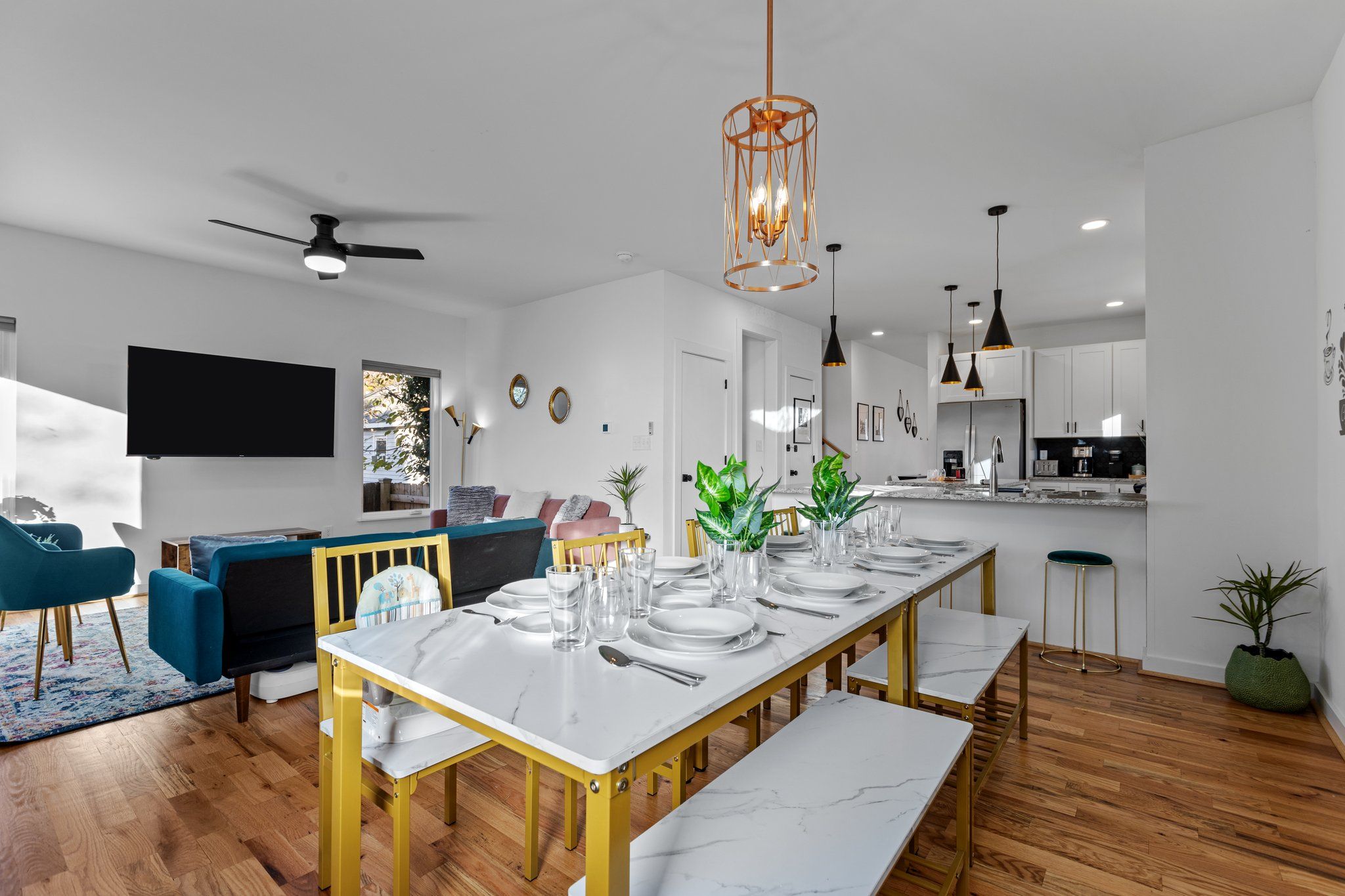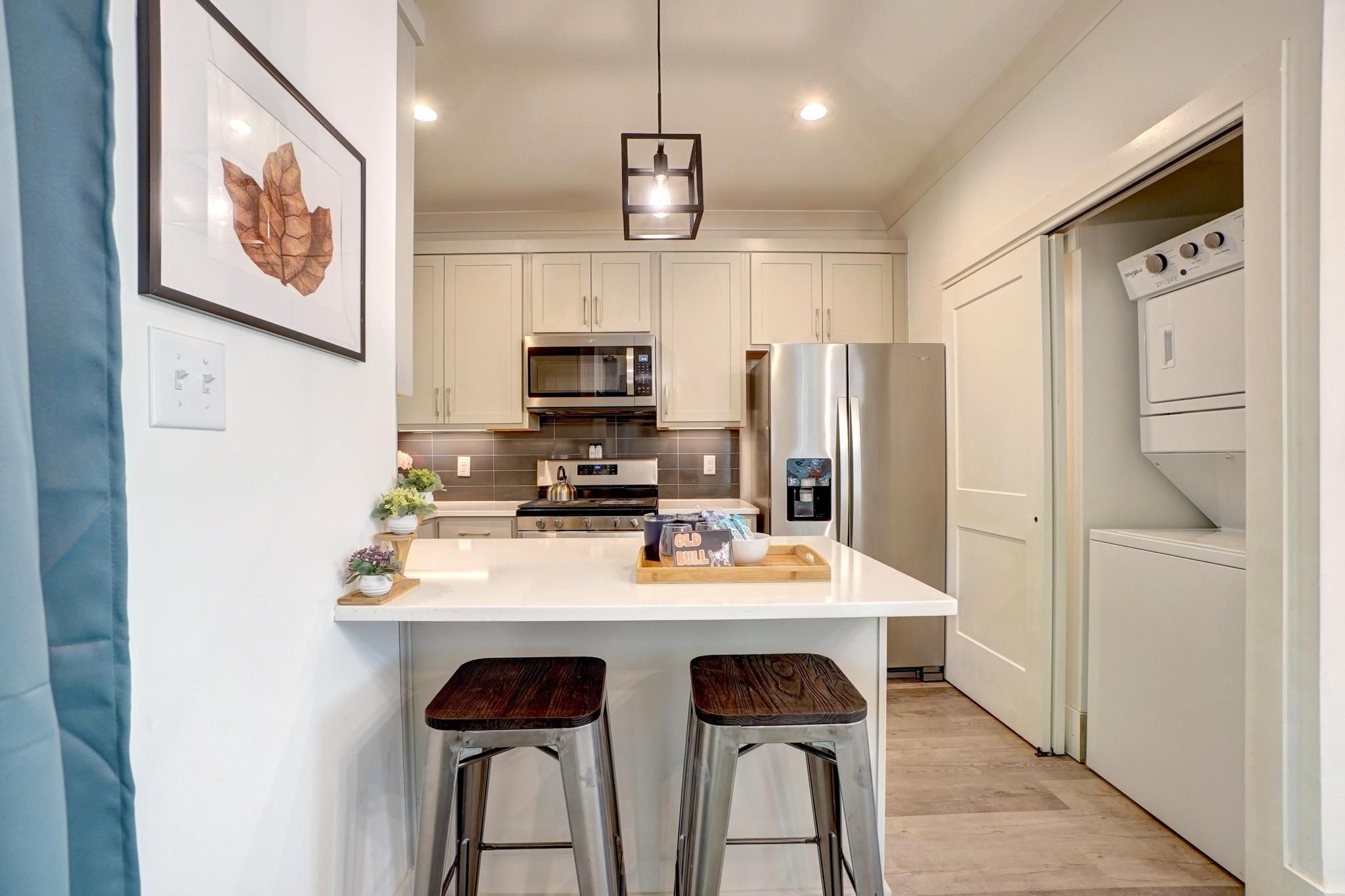 Each bedroom is themed for a bird living in beautiful Eastgate Park, next door to the house. The house also has a waffle bar and an expansive coffee bar, with a Nespresso!