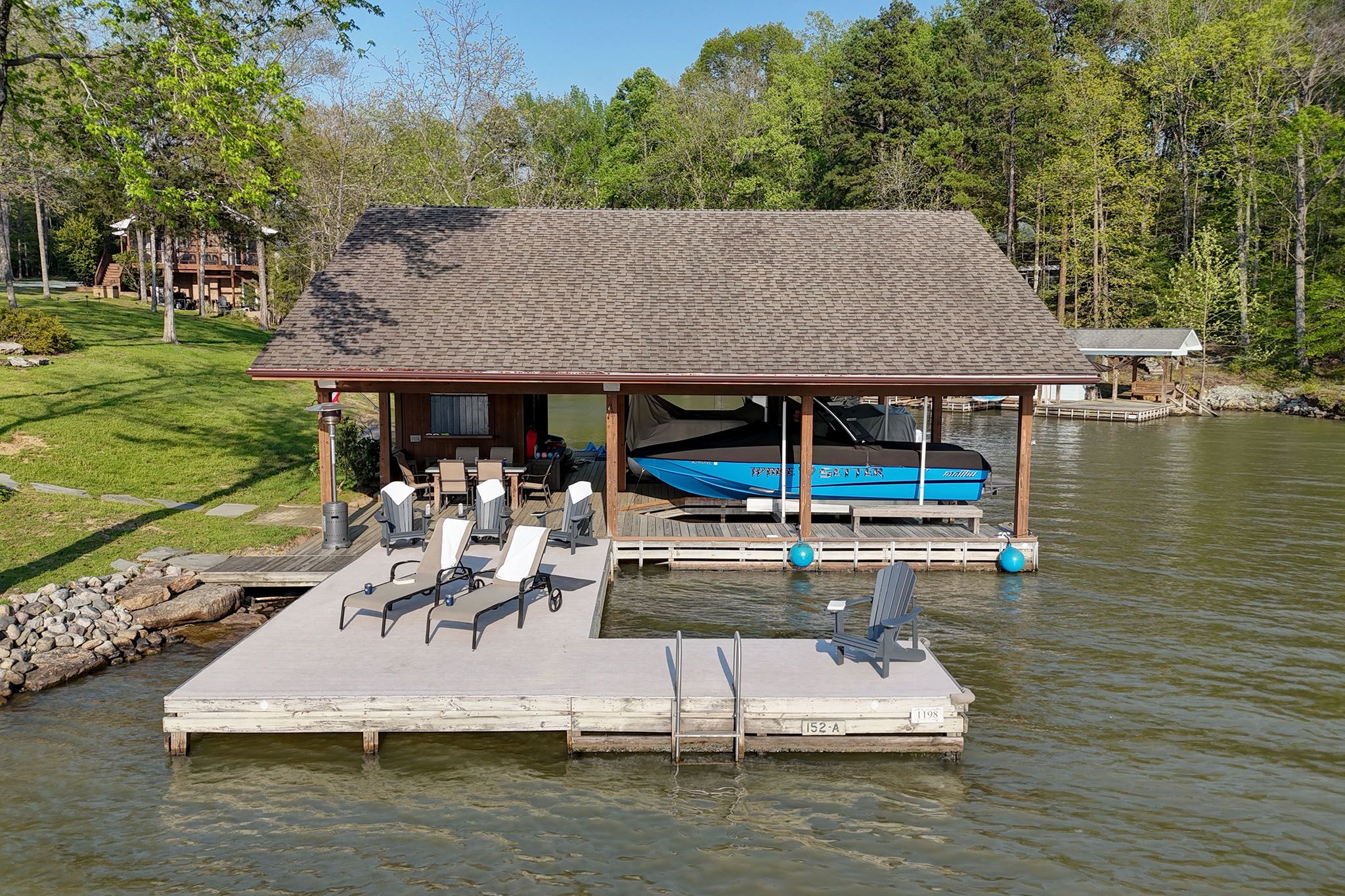 The Boat Dock: The large dock is perfect for swimming, sunbathing, fishing, or tying up your boat or our paddle board.