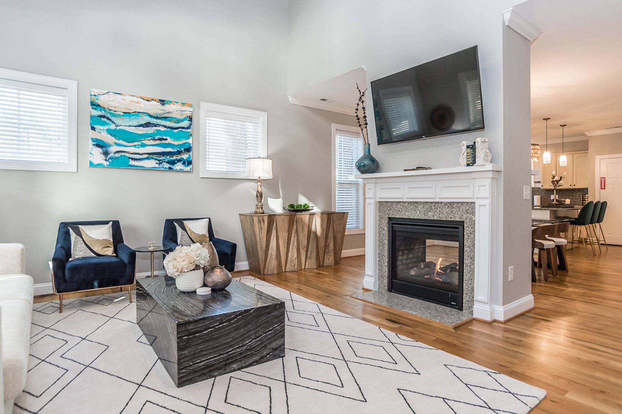Stay in a spacious new home in Downtown Raleigh! The property includes a third-floor penthouse with a sky deck and fire pit! 1st Floor